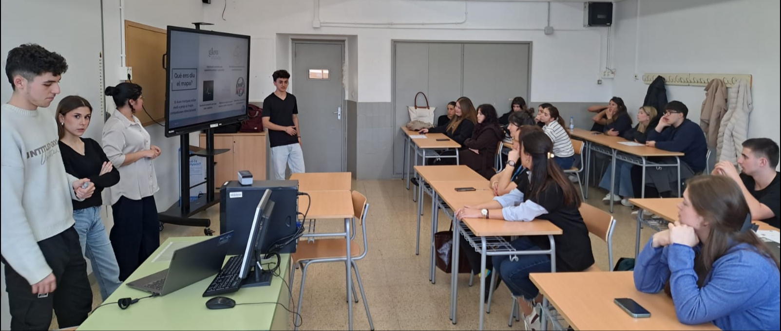 L’alumnat de primer curs GS de Gestió d’Espais Comercials de l’Institut Santa Eugènia, ens van venir a fer una xerrada sobre la importància del posicionament de les marques comercials i la personificació de la marca. Molt interessant pel nostre mòdul de Direcció i comercialització.