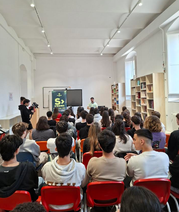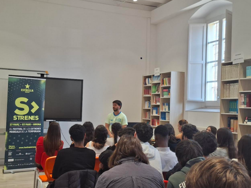 Per acabar la sessió, Pau Serrasolses va animar l’alumnat a participar en el concurs del festival Strenes, en què diversos instituts de Girona presenten cançons creades pels seus estudiants.